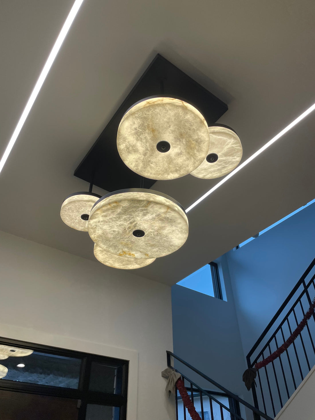 The Alabaster Halo Light composed of the alabaster rings, and the straps. The straps are...